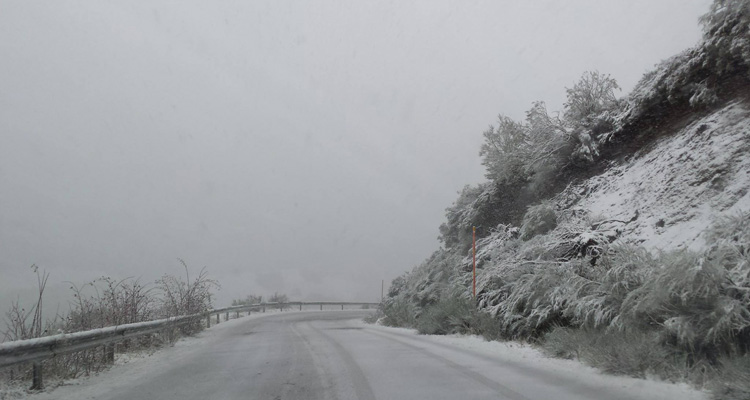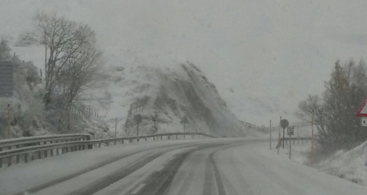 Antes de llegar a la estación de San Isidro, la carretera presentaba este aspecto cerca de Isoba, en unas imágenes captadas por Rosa Martínez.