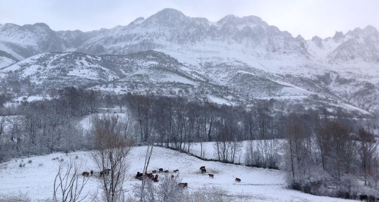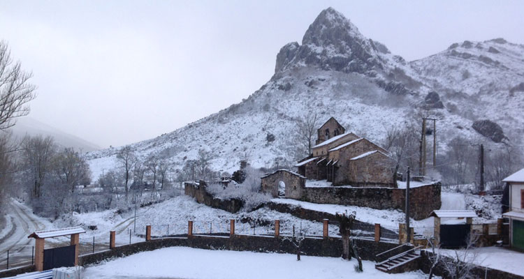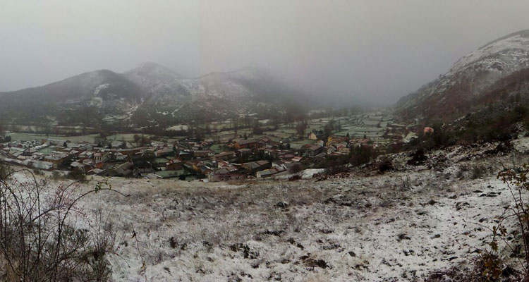 La localidad de Cofiñal, a los pies del Puerto de Las Señales, también estaba rodeada de una ligera capa de nieve, como se ve en la fotografía de Félix Diez.