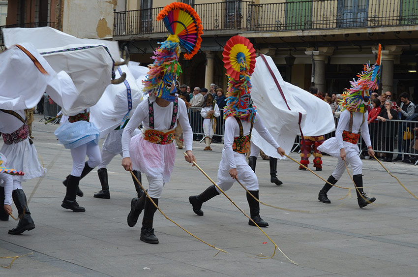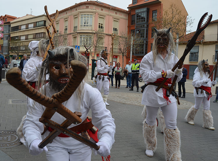 Curiosas las culturas ancestrales. Jurrus, castrones, guirrios, zafarrones y otros muchos personajes de las celebraciones populares más tradicionales, principalmente de la provincia leonesa, pero también llegados de Braganza, Portugal, se dieron cita este sábado en Astorga en un encuentro único que cuyo en el que participaron centenares de personas. Más de una docena de agrupaciones, llegadas de las comarcas del Órbigo, Cabrera, Tierras de La Bañeza, Riaño, Omaña, Bierzo y la propia Astorga, junto con las portuguesas, desfilaron por las calles de la bimilenaria azuzando y bailando con un público expectante y entregado. La música acompañó a la comitiva hasta la Plaza Mayor, donde el director del ILC, Adolfo Alonso Ares, pronunció unas palabras referentes a las diferentes culturas representadas, algunas de ellas datadas en la época prerromana. El encuentro ha sido organizado a través de la Asociación Europea de Cooperación Internacional, creada por la Diputación de León y la Cámara Municipal de Bragança, con el propósito de desarrollar un intercambio cultural entre los dos territorios. El objetivo es dar la posibilidad, tanto a los leoneses como a los portugueses, de conocer las singularidades culturales que comparten los dos territorios, en este caso basadas en los carnavales ancestrales y en las fiestas de invierno. Al acto acudieron diversas autoridades locales y provinciales, entre ellos el presidente de la Diputación, Juan Martínez Majo, que quiso destacar la importancia de esta iniciativa, que tuvo su comienzo en la celebración de ‘Mascararte’, en la ciudad lusa el pasado mes de diciembre. Allí los brigantinos pudieron conocer cómo son los antruejos de la provincia leonesa y «ahora nos devuelven mostrando lo mejor de sus tradiciones en nuestra provincia, con la gran carga cultural, antropológica y etnográfica con la que cuentan estos tradicionales personajes».