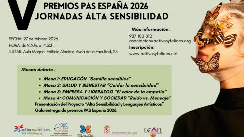 León se convertirá el próximo 27 de febrero en punto de encuentro nacional para profesionales, investigadores y personas interesadas en la alta sensibilidad con la celebración de los V Premios PAS España y la Jornada de Alta Sensibilidad, una cita que combinará divulgación científica, experiencias prácticas y reconocimiento institucional. El evento tendrá lugar en el Aula Magna del Edificio Albéitar de la Universidad de León y reunirá a especialistas de distintos ámbitos para analizar un rasgo de personalidad todavía poco comprendido en amplios sectores sociales.