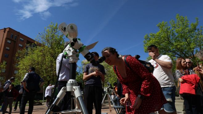 Los participantes pudieron observar el sol de manera directa mediante gafas de eclipse, así como a través de sistemas de proyección y con el uso de una caja oscura, según informó el Ayuntamiento de León en un comunicado.