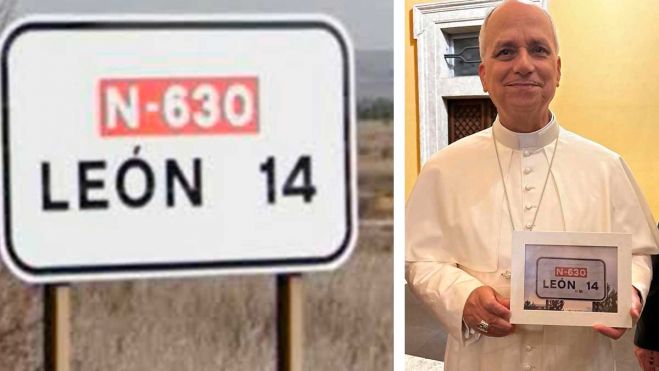 El secretario del pontífice se puso en contacto recientemente con Simón para invitarle a visitar el Vaticano y Galán fue uno de los cuatro sacerdotes que le acompañaron. Entre los regalos que le hicieron al pontífice había jamón, dulces típicos de la comarca de Sayago y una foto de la señal ubicada en la carretera N-630 para indicar que León está a 14 kilómetros en el trayecto desde Zamora. "Nos acordamos de cuando la imagen empezó a circular por las redes sociales después de que Prevost fuera elegido papa y decidiera llamarse León IV. Nos pareció un gesto simpático y se la llevamos", explica Galán.