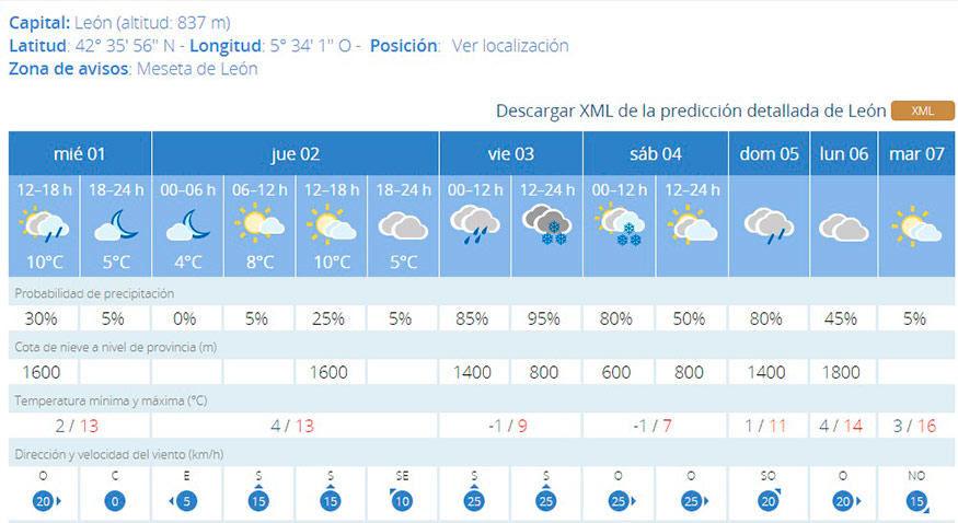 La situación empeorará durante el fin de semana. Durante la madrugada del sábado la cota de nieve caerá hasta los 600 metros, por lo que la nieve podría verse también en León capital y en otras zonas de la provincia, además de en la montaña.
