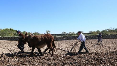 El paisaje retrotrae varias décadas al campo español, una imagen que aporta un nostálgico elemento de una forma de agricultura a mínima escala “El trabajo con burro no debería desaparecer”, acierta a decir Adolfo Garzón. Cuenta con 80 años y defiende a ultranza este formato de trabajo. En una impecable escena familiar, el paisaje retrotrae varias décadas al campo español, una imagen que aporta un nostálgico elemento de una forma de agricultura a mínima escala a punto de perderse.