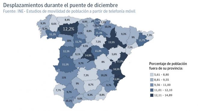 De este manera, el Instituto Nacional de Estadística (INE), en sus estudios de movilidad de población a partir de telefonía móvil, registró que 56.106 leoneses habían viajado el día central del puente, el domingo día 6. Ese porcentaje del 12,2 por ciento de residentes que se habían desplazado en la festividad de la Constitución solo fue superado, en toda la España peninsular, por las provincias de Madrid (14,9 por ciento), Valencia (14,6 por ciento), Alicante (13,9 por ciento) y Zaragoza (13,5 por ciento). Mientras que las regiones insulares también se situarían en torno a estos porcentajes, el mayor grado de cumplimiento se alcanzaría en Teruel, Guipúzcoa y Ciudad Real.
