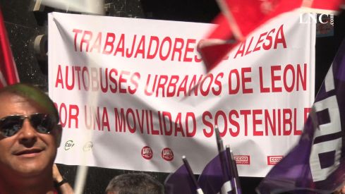 Primera jornada de paros parciales en el servicio de autobuses de la ciudad de León. Y satisfacción entre los representantes de los trabajadores, que se han concentrado este viernes a las puertas del Ayuntamiento de León en el inicio de unas movilizaciones quecoinciden con la campaña electoral. "En principio los consideramos bastante exitosos por el seguimiento que tienen dentro de los servicios mínimos que se nos han impuesto y que el Ayuntamiento ha situado en un 50%, pero realmente son un 80% porque hay varias líneas que sólo tiene un autobús y están funcionando al 100%. Es un 80% encubierto", ha explicado Jonathan Abeledo, delegados sindical de Comisiones Obreras.