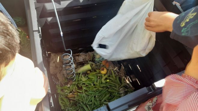 El taller se ha desarrollado de forma que tras seleccionar el lugar en el que estaba previsto situar el compostador, se preparé el terreno. Los escolares montan el compostador y activan el mismo con el aporte de material orgánico y todo lo necesario para su puesta en funcionamiento.