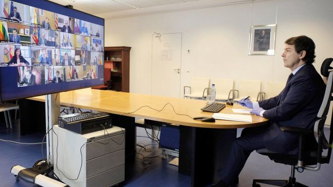 Fernández Mañueco, en una rueda de prensa telemática después de la quinta reunión entre el presidente del Gobierno y los de las comunidades autónomas, manifestó que lo primero es garantizar la seguridad de los trabajadores y urgió la convocatoria del comité de expertos para plantear y planificar la denominada desescalada con las comunidades autónomas.