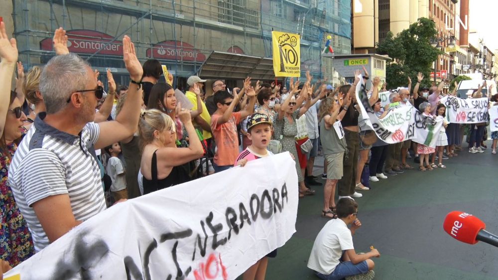 ‘No a la planta biogás’, ‘No a la incineradora en Puente Castro, ‘Renovables sí, pero no así’, ‘La salud no se vende’… Son sólo algunas de las consignas que se han podido escuchar este jueves en la protesta convocada por los vecinos de los barrios del sur de León ante la sede del Ayuntamiento en Ordoño con el fin de mostrar su rechazo a la construcción del parque de energías renovables que servirá para abastecer la red de calor sostenible de la ciudad.