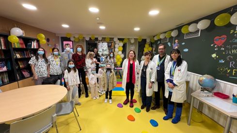 La conmemoración del Día Internacional del Cáncer Infantil concluyó, también en la planta de Pediatría, con el cuentacuentos ‘Las gafas de las emociones’ y la entrega de llaveros personalizados con corazones por parte de los alumnos de Centro de Formación Profesional Clarín de León. En En el acto estuvieron presentes la subdirectora médica del Caule, Pilar Díz, la directora de Enfermería, Mónica Suárez, junto a los tres subdirectores de este área, así como facultativos del Servicio de Pediatría, acompañados de la presidenta de Alcles, Nonia Alejandre.
