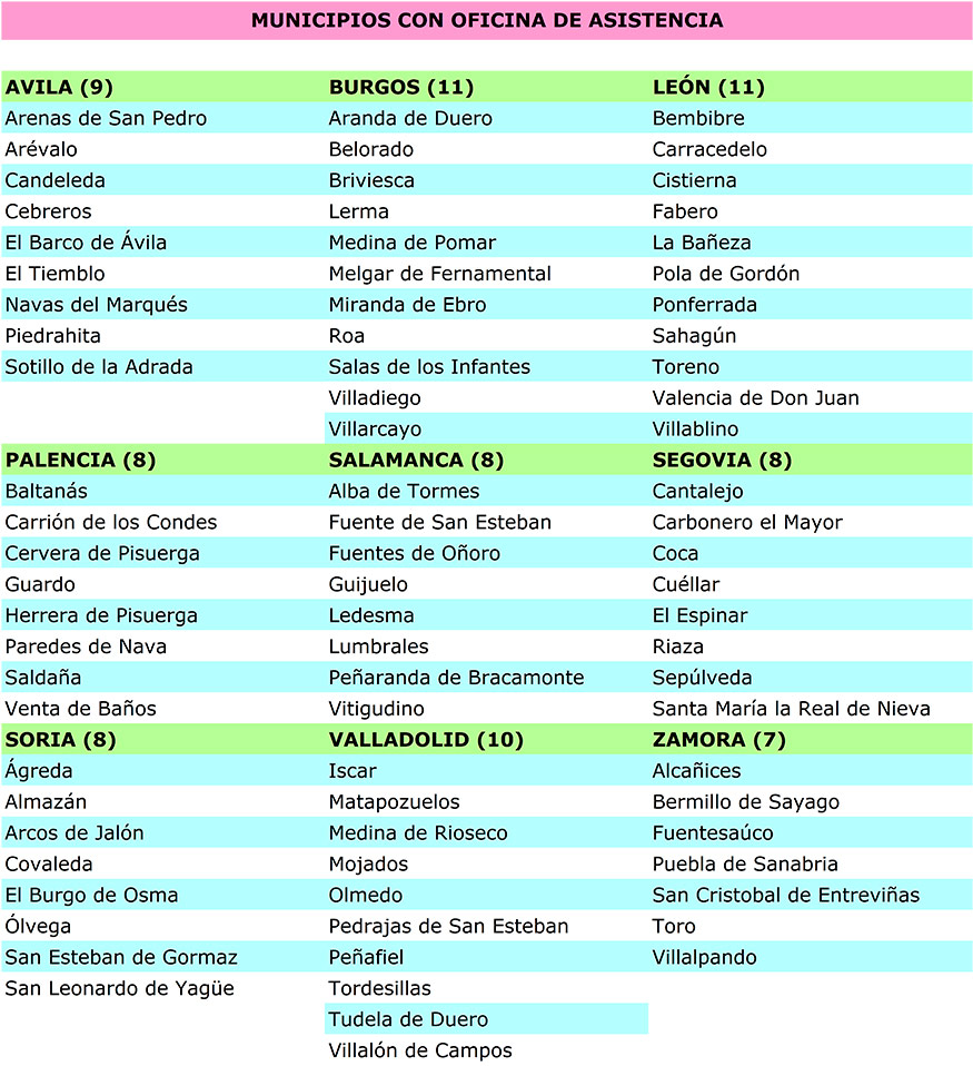 La ubicación de los puntos de atención se mantiene con respecto a campañas anteriores. Se da continuidad así a la cooperación iniciada en 2004 entre la entonces Consejería de Hacienda y la Federación Regional de Municipios y Provincias (FRMP), que se concreta en la firma de convenios de colaboración entre la consejera Pilar del Olmo y los alcaldes de las localidades que se suman a la Campaña de la Renta.