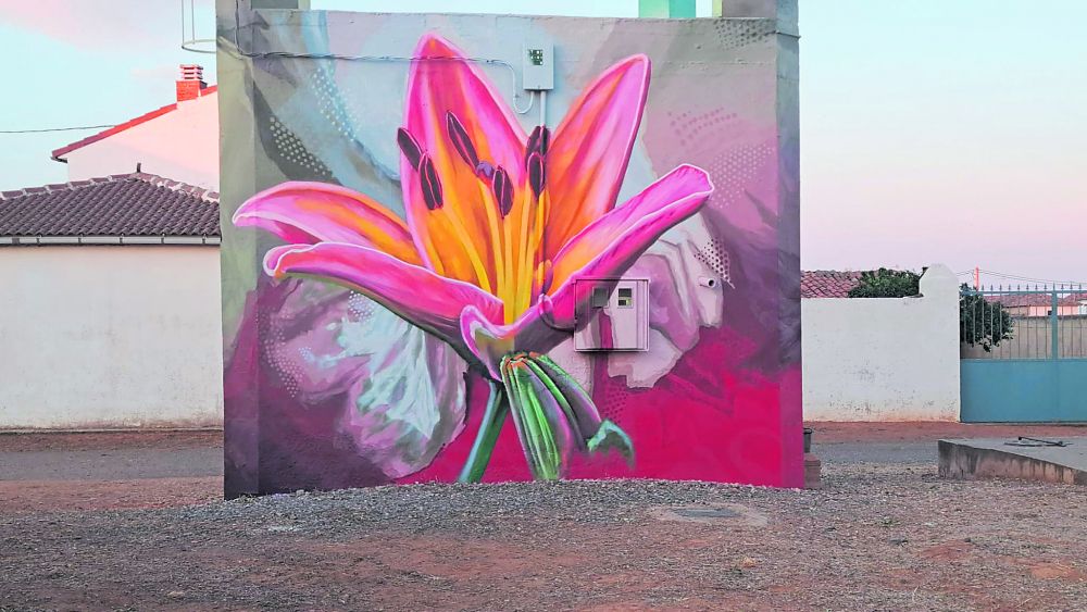 No ha sido diferente en Izagre y el depósito luce una nueva y espectacular cara, con pájaros, flores, animales... "David había pensado en hacer un dibujo al uso, de los suyos, realmente llamativos, pero pensamos que era mejor incorporar elementos que fueran parte de nuestra fauna y nuestra flora, de nuestros paisajes, y así también reivindicamos los valores de nuestro pueblo. Estamos muy contentos con el resultado".