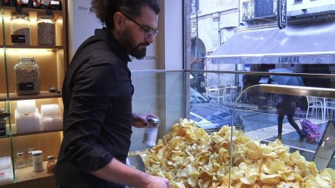 A finales de los ochenta y durante la década de los noventa era habitual, al pasar por la calle Burgo Nuevo, encontrarse a chavales parados y mirando atentamente el escaparate de Marcos, en el que una montaña de patatas fritas hacía salivar a los paseantes. Había más establecimientos, sobre todo bares, especializados o conocidos por su forma de preparar las patatas fritas, pero hasta que llegó Marcos no había en la ciudad ninguna otra tienda que las sirviese a granel y en formato chip.