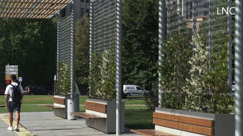 El alcalde de León, José Antonio Diez, ha explicado este miércoles que la pérgola bioclimática que se ha construido en el entorno del Auditorio y de la Delegación Territorial de la Junta está “prácticamente rematada”, puesto que ya se han quitado las vallas y se están acometiendo los últimos detalles en sus instalaciones. Sin embargo, está pendiente todavía un elemento básico a la hora de cumplir el principal objetivo de este equipamiento, que es generar una zona de sombra. "Ahora queda que nos lleguen las placas fotovoltaicas que van a cubrir toda la parte superior de la pérgola, es decir, mucha gente dice que no da sombra, pero es porque aún no se han colocado las placas fotovoltaicas, que se recibirán en no demasiado tiempo. Me han dicho que será cuestión de unos días o unas semanas. Una vez que se coloquen, tendremos en primer lugar un nuevo y magnífico espacio para la ciudad, un futuro intercambiador de autobuses y un punto de generación de energía, porque esas placas van a poder suministrar a algunos equipamientos del entorno", ha indicado el alcalde.