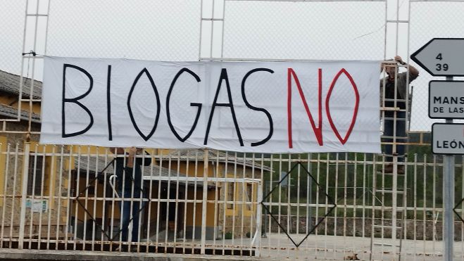 La Asociación Esla Vida ha llevado a cabo una nueva acción dentro de su campaña de sensibilización contra la implantación de una planta de biogás en la localidad. El pasado 18 de abril, el colectivo colocó una gran pancarta con el lema “BIOGÁS NO” en la verja del patio de las antiguas escuelas de Vidanes, junto a la carretera N-625, buscando máxima visibilidad.