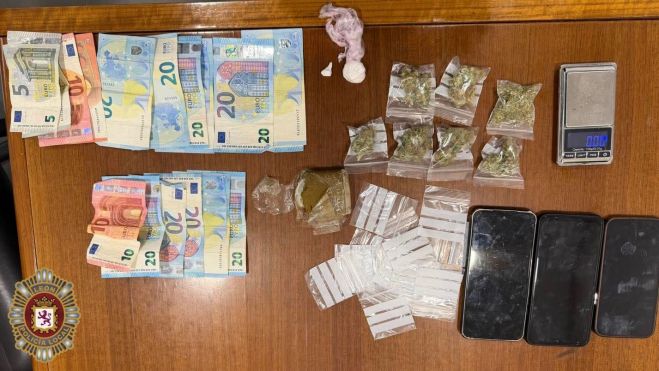 La actuación se completó con la incautación de 280 euros en efectivo, distribuidos en billetes fraccionados de 5, 10 y 20 euros, así como tres teléfonos móviles y un vehículo.
