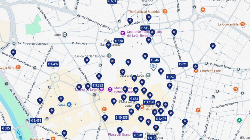 A siete meses para que eso ocurra, lo más barato que se encuentra en la capital leonesa está a 515 euros. Y, de ahí, la cosa sube hasta los 1.190. O hasta los 9.852 euros si se trata de un grupo de 9 personas, lo que igualmente saldría a 1.000 por cabeza. Eso sí, estas dos últimas opciones son apartamentos. Entre medias, se encuentran hoteles por 515, 585 ó 693 euros. El problema, y uno de los motivos de estos precios, es que cada vez hay menos opciones para elegir: en Booking.com hay apenas seis hoteles con disponibilidad y 16 apartamentos, que también se encuentran por encima de los 600 y hay opciones para varias personas, como el ya mencionado por más de 9.000 euros y otros para grupos ofertados por 4.497 y 6.520 euros. La situación en Airbnb no difiere mucho: solo hay 24 pisos y la mayoría se ofertan entre 400 y 500 euros.