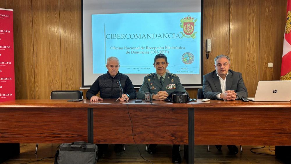 La Cámara de Comercio e Industria de Astorga fue el escenario este miércoles en el que se presentó el proyecto CiberComandancia de la Guardia Civil de León para hacer frente a los ciberdelitos que empresas y particulares de la ciudad y su comarca puedan sufrir y para que sepan cómo actuar ante este tipo de situaciones que cada vez son más habituales.