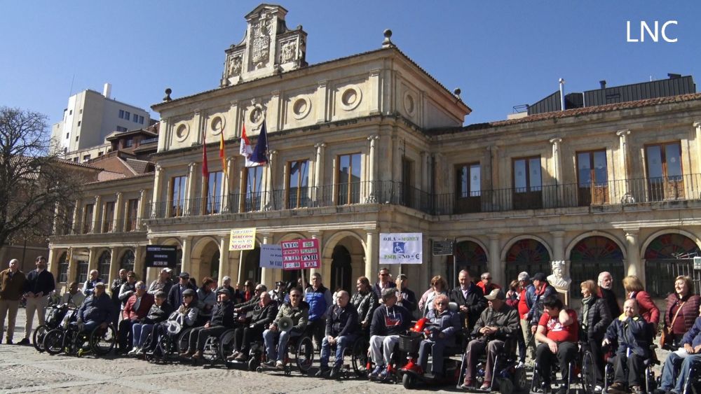 El colectivo de personas con movilidad reducida se concentró en la mañana de este miércoles en la Plaza San Marcelo, frente al Ayuntamiento de León, para denunciar la falta de plazas de aparcamiento adaptadas en la ciudad y exigir el cumplimiento de la normativa vigente.