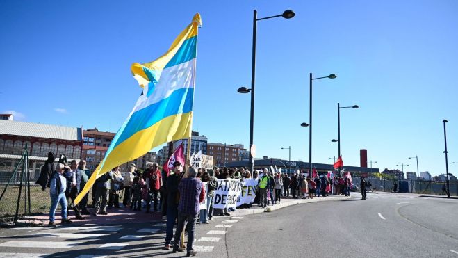 También la plataforma que exige la integración de Feve y la llegada del tren a la capital se acercó al Palacio de Exposiciones para trasladar su reivindicación. “La gente está abandonando el tren porque no le sirve, porque no le sirve como está. Y esto es una situación que lleva 14 años; la gente abandona el tren y los que lo usan están sufriendo. Ya está bien. No hay ninguna solución, estamos en el mismo lugar que hace 14 años, sin ningún plan”, lamentó el portavoz, Manuel Urueña.