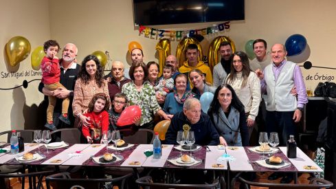Santiago Villadangos dedicó la mayor parte de su vida a la agricultura, pero también fue concejal del Ayuntamiento de Santa Marina del Rey en los años 80. Con motivo de su centenario, su familia le sorprendió con una gran fiesta en el bar-restaurante 'Lo Nuestro', de San Martín del Camino. El homenajeado se mostró muy emocionado al poder soplar las cien velas junto a su mujer, Margarita —quien cumplirá 96 años este 12 de enero—, sus tres hijos (Santiago, Magdalena y Kelly), sus cinco nietos y sus cuatro biznietos.