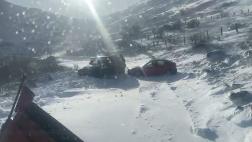 La gran acumulación de nieve en el municipio obligó a la quitanieves a tener que rescatar a varios vecinos que sufrieron percances con sus vehículos por el mal estado de la carreter subiendo de Casares y Cubillas, en la zona de Arbas.