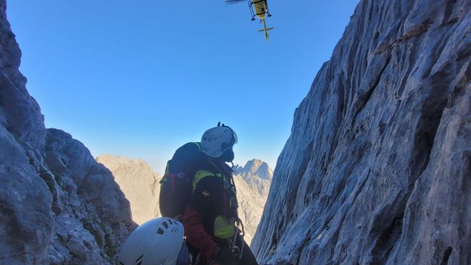 La sala de operaciones del 1-1-2 de Castilla y León recibió una primera llamada a las 22.47 horas de la noche, solicitando asistencia para un hombre de 60 años que sufrió una caída en Peña Santa cuando realizaba rappel. En la bajada de Canal Estrecha se le agotó la cuerda y cayó, lo que le provocó un golpe en la espalda y otro en el pie. Sus acompañantes se dirigieron al refugio de Vegahuerta y la víctima quedó resguardada en una repisa con comida, agua y ropa de abrigo.