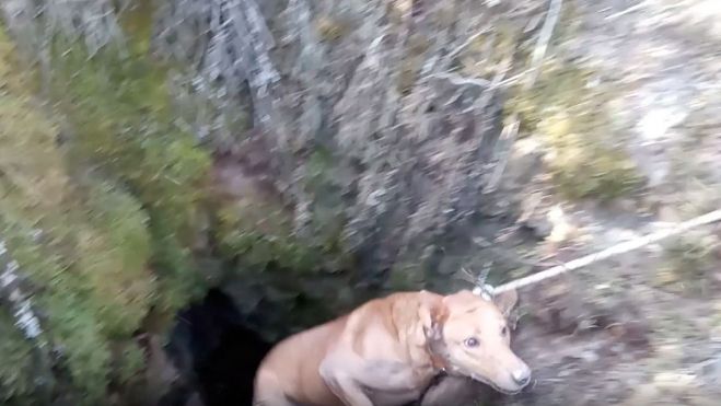 Rescatan a dos perros que habían caído por una chimenea minera en Santa Cruz de Montes