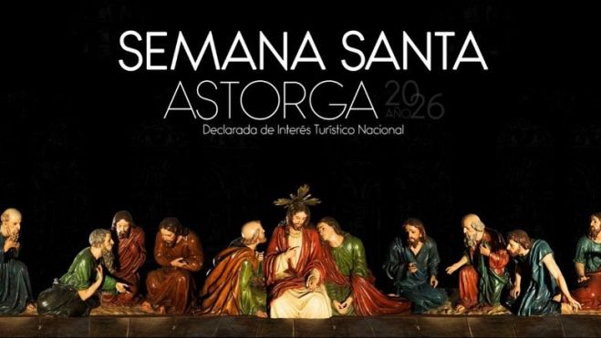 El paso de ‘La Santa Cena del Señor’ es la imagen protagonista de la Semana Santa 2026 de Astorga. Un cartel que fue presentado este pasado domingo en el Aula Magna del Seminario Mayor que este año apuesta por un novedoso formato horizontal en el que se puede ver a Jesús y sus discípulos con ropajes coloridos frente a un fondo oscuro en el que se aprecian las siluetas de las vidrieras de la Catedral.