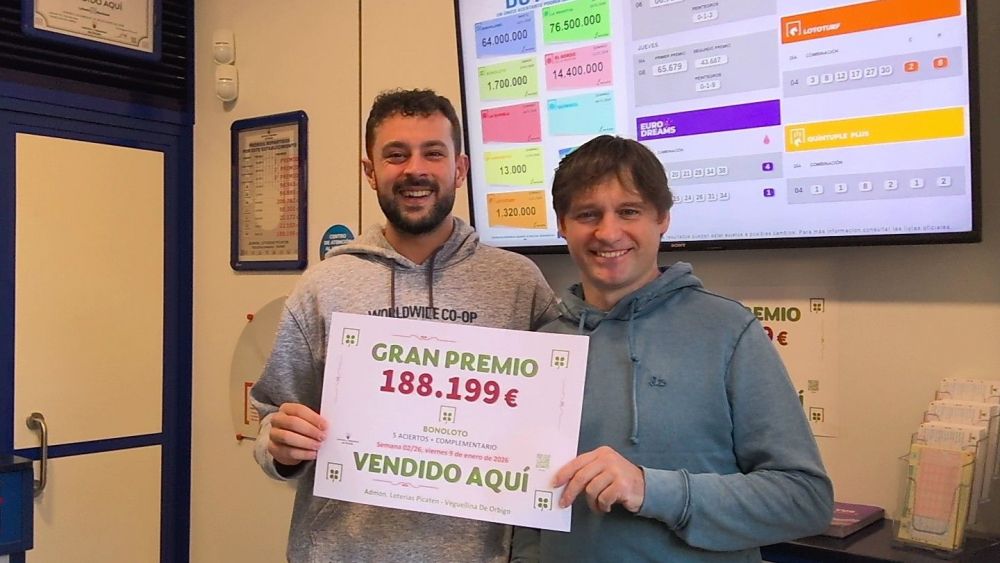 El sorteo de la Bonoloto celebrado este viernes, 9 de enero, ha dejado un premio de segunda categoría en la localidad leonesa de Veguellina de Órbigo dotado con 188.200 euros, según ha informado Loterías y Apuestas del Estado en un comunicado remitido a Europa Press.