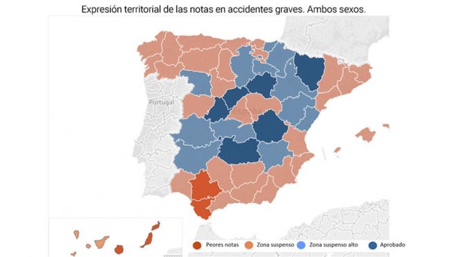 Provincias, en general, con carreteras llanas y sin sinuosidad y la porosidad poblacional que sí se dan, mayoritaria pero no exclusivamente, en territorios ubicados en el sur de España como Las Palmas, Cádiz, Sevilla, Pontevedra y Almería, que congregan los peores resultados. En la provincia de León, según estas estadísticas, los jóvenes conductores suspenden con una nota de 2,63 en accidentes graves.