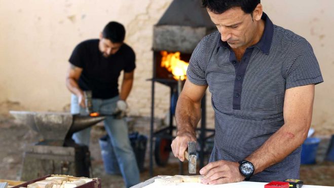 Se trata de dos actividades que eran propias de la época medieval en las que se está mostrando a los asistentes la manera en la que se elaboraban diferentes elementos propios de cada una de ellas. En el caso de la forja se ha elaborado una voluta doble, una composición románica con dos volutas contrapuestas con la técnica tradicional, es decir, mediante el uso del martillo, con el uso de plantillas pero con las piezas siempre en caliente.