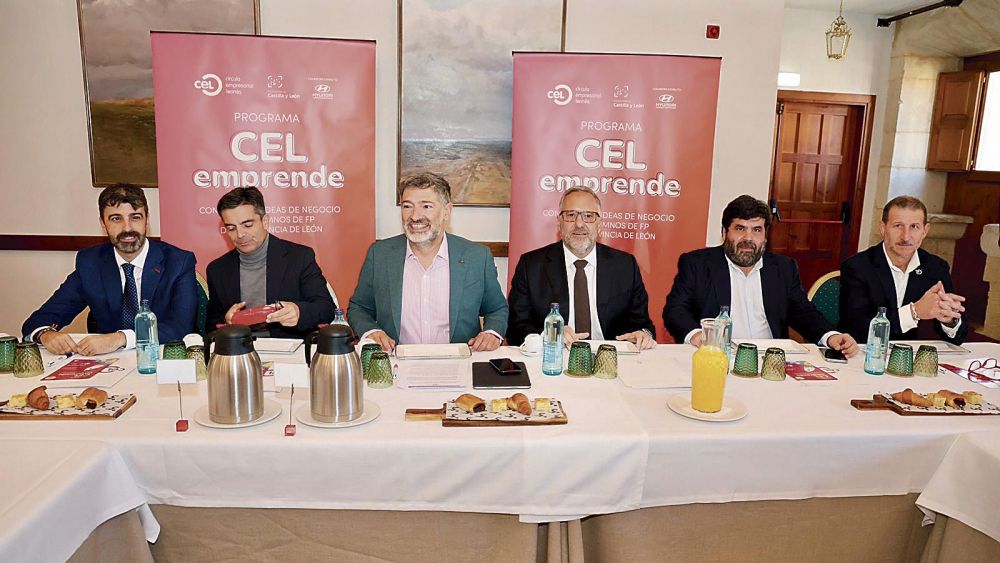 El presidente del Círculo Empresarial Leonés, Julio César Álvarez, y su homólogo en las Cortes y en la Fundación Castilla y León, Carlos Pollán, presentaron ayer en el Hotel Real Colegiata de San Isidoro la tercera edición del programa “CEL Emprende”, una iniciativa que tiene como principal objetivo impulsar el espíritu empresarial entre los más de 7.000 estudiantes de 34 centros de Formación Profesional de la provincia a través de un concurso de proyectos.