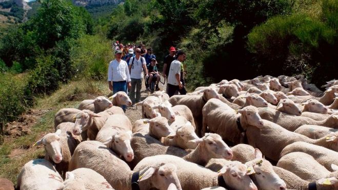 Desde la Peña La Pintas comenzaron a llegar de buena mañana una nutrida ‘caravana’: el rebaño de la majada, con sus pastores y pastoras, muchos curiosos y algo que también es una seña de identidad de este pueblo: una ruta inclusiva para discapacitados. Este sábado venían cuatro sillas joëlette y tres barras direccionales ‘manejadas’ todas ellas por las gentes de ese ejemplar y solidario grupo de Montaña Pandetrave.