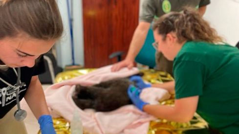 En la primera valoración se observó que el ejemplar se encontraba en estado de shock, con “deshidratación muy severa y muy baja condición corporal”. Ya en el CRAS, donde se encuentra actualmente, el osezno estuvo “más atento” y comenzó a responder a los estímulos, aunque “sigue sin tener movilidad en el tercio posterior que le impide ponerse de pie”.