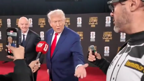 La clásica camiseta de esmoquin de la Cultural Leonesa de la temporada 2014/15 estuvo presente este viernes en el evento del sorteo del Mundial celebrado en Estados Unidos y protagonizó un curioso momento con el presidente, Donald Trump.