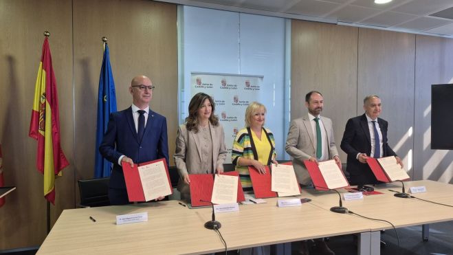 La rectora de la Universidad de León (ULE), Nuria González, ha firmado este martes el convenio de colaboración para el desarrollo del programa Experience Plus, junto a la consejera de Industria, Comercio y Empleo de la Junta de Castilla y León, Leticia García, y los rectores de las otras tres universidades públicas de la región. Esta iniciativa estratégica busca mejorar la inserción laboral cualificada de jóvenes titulados y fortalecer la colaboración entre el mundo académico y el tejido empresarial.