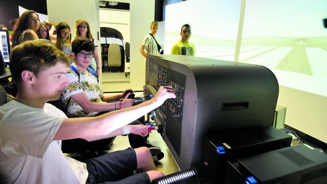 El recorrido por las universidades de la Comunidad hizo su parada ayer en la ULE donde una veintena de jóvenes con discapacidad procedentes de centros de Educación Secundaria, Bachillerato y ciclos medios de Formación Profesional de Castilla y León, participaron en una visita guiada al Centro de Simulación de Vuelo, donde Alfredo Labarta, responsable de este servicio universitario, ofreció todas las explicaciones reclamadas.