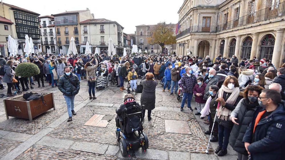 La capital leonesa ha celebrado este viernes, 3 de diciembre, el Día Internacional de las Personas con Discapacidad con un acto de encuentro en la plaza de San Marcelo. Usuarios de diferentes asociaciones que trabajan con el colectivo en la ciudad se han encontrado de nuevo tras un año sin actividades conjuntas a causa de la pandemia.