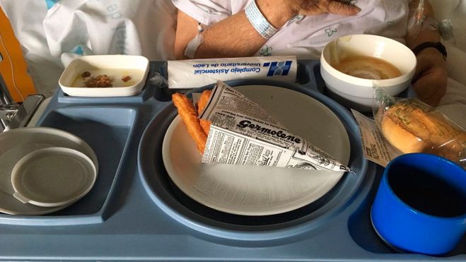 Así, el servicio de cocina del hospital elaboró unas 300 comidas de este menú de alta cocina formado por un primer plato de huevo poché trufado con cremoso de patata y sirope de verdura; un segundo plato de churros de bacalao con chocolate (caldo de pescado) de las Pedroñeras y un postre de quema de queso de cabra, avellanas y aove. Junto al menú se incluía un tarjetón en cada bandeja en la que se recogía el nombre de los platos, una foto de los equipos de cocina con un mensaje positivo para el paciente y un cuestionario para conocer la satisfacción del paciente.
