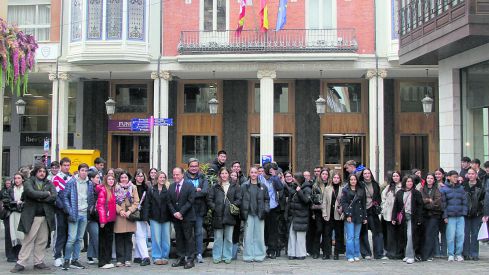 La alcaldesa de Palencia, Miriam Andrés, y el pleno del Consejo de Cuentas, formado por su presidente, Mario Amilivia, y los consejeros Emilio Melero y Miguel Jiménez, recibieron este jueves en el Ayuntamiento de Palencia a cerca de 90 estudiantes de la Facultad de Derecho de la Universidad de León, tanto del Grado en Derecho como del Doble Grado en ADE. De esta forma, los universitarios leoneses pudieron acercarse a la labor de este órgano de control externo.