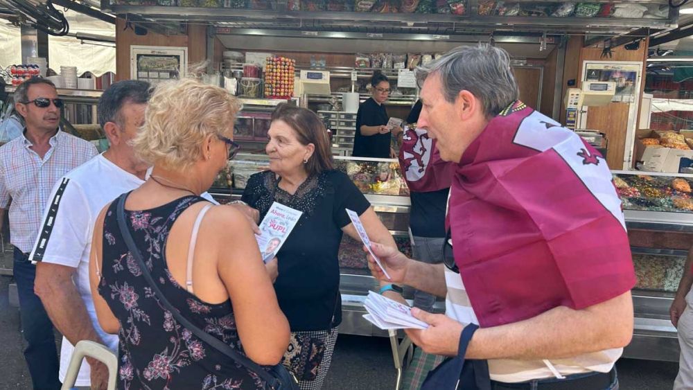El candidato de UPL a conseguir su primer diputado nacional también hizo campaña – al igual que el PSOE – en el mercado tradicional de la Plaza Mayor de León, que se celebra cada sábado y en el que repartió folletos con su programa electoral entre los vecinos.