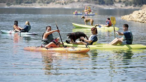 El perro es el mejor amigo del... agua. Al menos, cada jueves de verano en el embalse de Riaño. Decenas de turistas y sus mascotas se dan cita para navegar a cuatro patas, y a dos manos, en unas sesiones de piragüismo organizadas por una empresa leonesa especializada en viajes con animales.