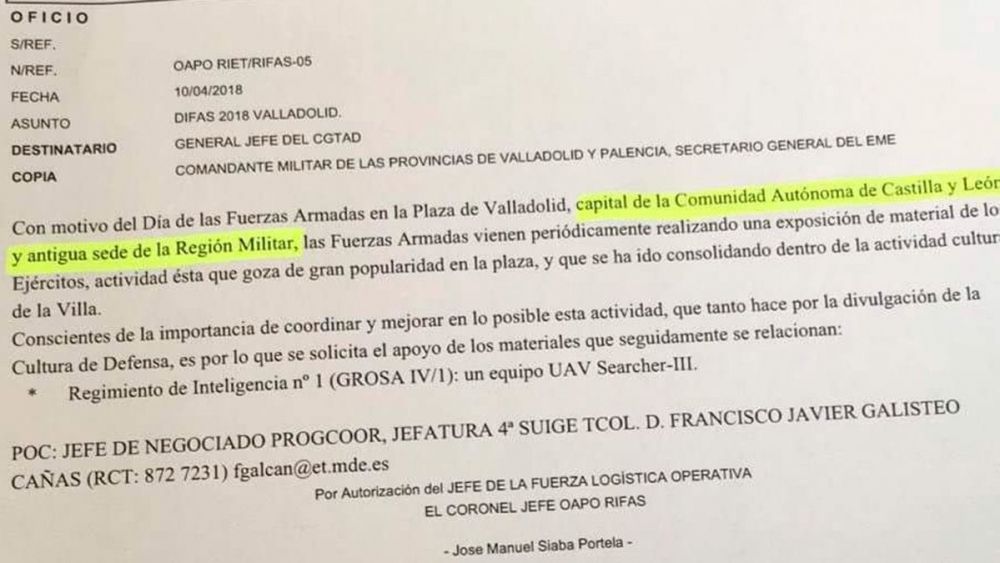 UPL solicita una rectificación a las Fuerzas Armadas tras haber atribuido a la ciudad del Pisuerga la capitalidad de la comunidad