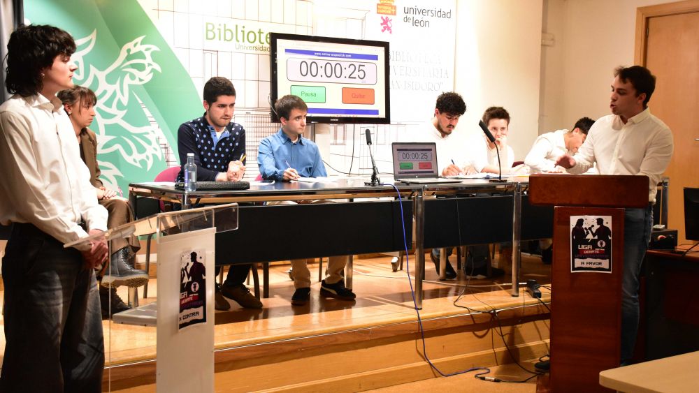 La Universidad de León ha celebrado durante el mes de marzo una nueva edición de su Liga de Debate, una iniciativa impulsada por la Asociación de Debate y Oratoria, en colaboración con el Vicerrectorado de Estudiantes, Cultura y Deportes y el Área de Estudiantes, que ha reunido a una veintena de alumnos en distintas fases competitivas hasta la gran final. La competición ha puesto en valor la capacidad argumentativa, el pensamiento crítico y las habilidades comunicativas del estudiantado, a través de diferentes rondas en las que los equipos han defendido posiciones enfrentadas, demostrando un alto nivel de oratoria y análisis.