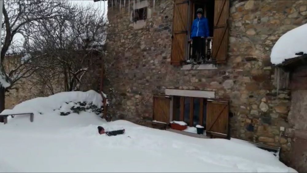 Los niños son, sin duda, los que más disfrutan de las grandes nevadas como la que estos días cae en los pueblos de montaña