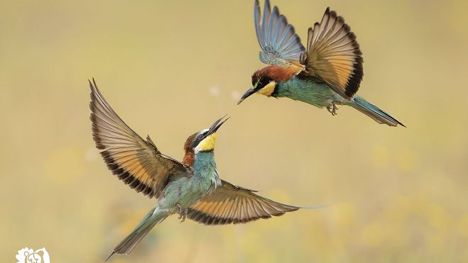 El abejaruco es posiblemente el ave más colorida de todas aquellas que habitan la Península Ibérica. De él siempre se cuenta que parece que hubiera volado hasta el arco iris y se hubiera contagiado de sus colores; a su plumaje solo le falta el color rojo, pero este podemos encontrarle en sus ojos.