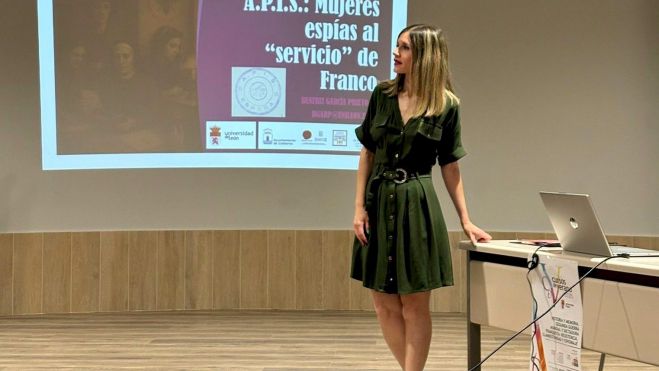 La jornada de este martes en el Curso de Verano de la ULE en Cistierna, centrado en la II Guerra Mundial y el franquismo, la cerró la historiadora leonesa Beatriz García Prieto con una ponencia titulada ‘A.P.I.S.: Mujeres espías al servicio” de Franco’, un tema tal vez poco conocido pero importante pues, señaló la ponente, «Franco tenía muy claro que la información era poder. Por este motivo, durante la guerra civil, puso en marcha distintos servicios de inteligencia para obtener datos sobre sus enemigos y adversarios. Unas referencias que emplearía en beneficio de la victoria sublevada y, desde 1939, de la consolidación de su dictadura». Además de ello, «también surgieron redes independientes de espionaje que prestaron sus servicios” al dictador. Grupos que, pese a que alababan al caudillo y mostraban su fidelidad hacia él, en realidad, utilizaron esa imagen subordinada para ganarse la confianza de Franco y así influir sobre sus decisiones; usando, incluso, fake news». Y aportó ejemplos de esta falsa fidelidad o, cuando menos, interesada:«Llamativo es el caso de A.P.I.S., una red dirigida por la teresiana carlista María Dolores de Naverán y formada exclusivamente por mujeres (reales y ficticias) que manipuló al tirano franquista a lo largo de casi tres décadas (desde 1937 a 1965). Para lograr esta hazaña, estas ingeniosas damas se aprovecharon de una de las debilidades de Franco: su obsesión contra los masones».
