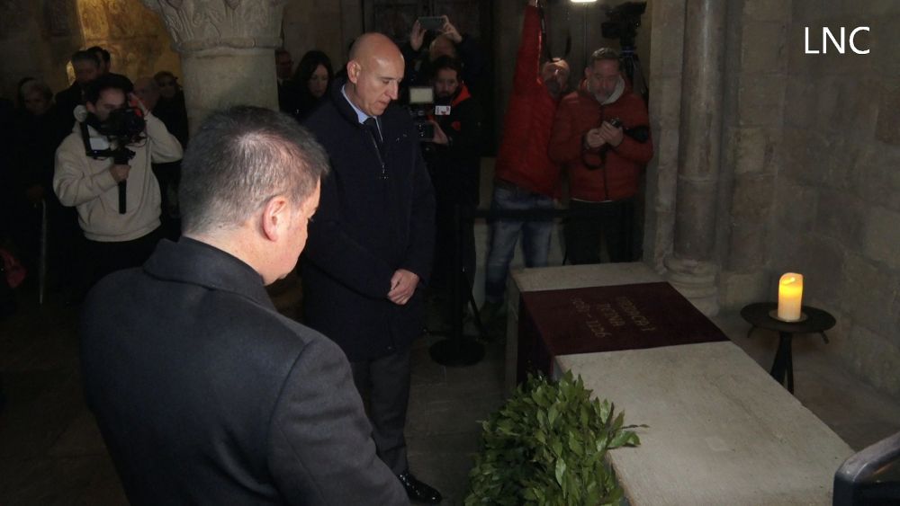 El 2026 será un año que en León estará marcado por los homenajes a Urraca I, cuando se cumplen 900 años de la muerte de la monarca. Unos actos que buscan poner en valor su legado, "ninguneado" por la Historia, y que han comenzado este viernes con una actuación de la Coral Isidoriana en el Panteón Real, seguida de la ofrenda de una corona de laurel frente a los restos de la reina y de un repique de campanadas en el Claustro de San Isidoro.