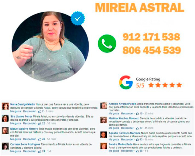 En ambos casos, el usuario sabe en todo momento cuánto va a pagar y que será atendido por la propia Mireia Astral en persona, ya que esta vidente buena real trabaja sin gabinete. Para ella es fundamental crear una conexión directa con la persona que se encuentra al otro lado del teléfono, ya que, de otro modo, su don resultaría completamente inútil.